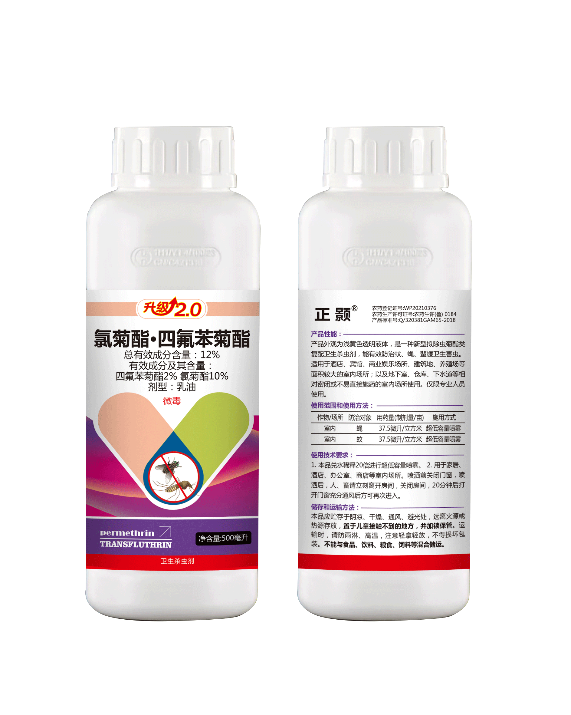 本品为一种新型拟除虫菊酯类复配卫生杀虫剂,可阻断害虫神经细胞中的钠离子通道,使神经细胞丧失功能,导致靶标害虫麻痹、协调差,最终死亡。无内吸作用,具有触杀胃杀作用。四氟苯菊酯与氯菊酯经科学复配而成,可高效防控多种卫生害虫。